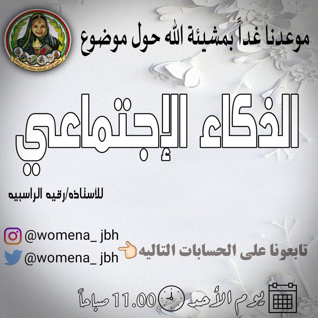 نظمت اللجنة الثقافية بجمعية المرأة العُمانية بجعلان بني بوحسن محاضرة بعنوان ( الذكاء الإجتماعي) للأستاذة رقية الراسبية يوم الأحد الموافق 9/ 8/ 2020م.